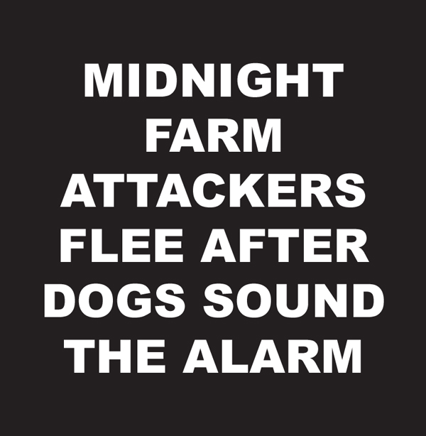 MIDNIGHT FARM ATTACKERS FLEE AFTER DOGS SOUND THE ALARM